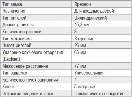 Врізний (восьми сувальдний, додатковий) Захист від кримінального зламу. Замок призначений для встановлення в металеві двері та шафи, а також сейфи